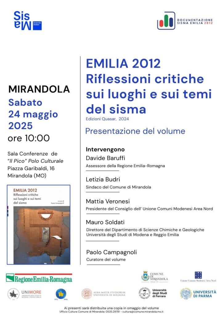 Il Comune di Mirandola ospita la presentazione del volume “Emilia 2012. Riflessioni critiche sui luoghi e sui temi del sisma” (Edizioni Quasar, 2024), un appuntamento pubblico dedicato all’approfondimento dei territori e delle trasformazioni legate al terremoto del 2012.